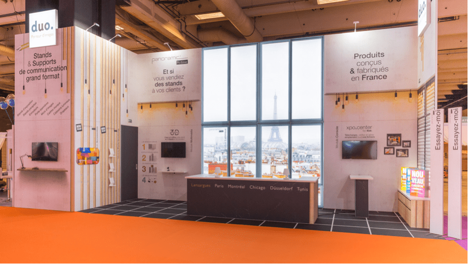 As custom booth manufacturers, we understand that exhibitors need to focus on the essentials. That’s why we offer Duo solutions for purchase and rental, allowing you to design a modular booth that stands out from the crowd with a wide array of possibilities.